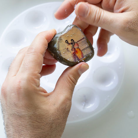 BEFORE : Thirty-one participants took part in the project. Some people had lived in Suffolk all their lives while others were from refugee and migrant backgrounds. Prior to the session they sent a photograph of a person close to them that had passed. Gillian edited then bonded each image to three stones to create Touchstones - one completed large photo stone that was specially boxed and revealed in the session by the participant, a smaller partially made beach pebble to Reveal and a tiny completed beach stone as a keepsake.